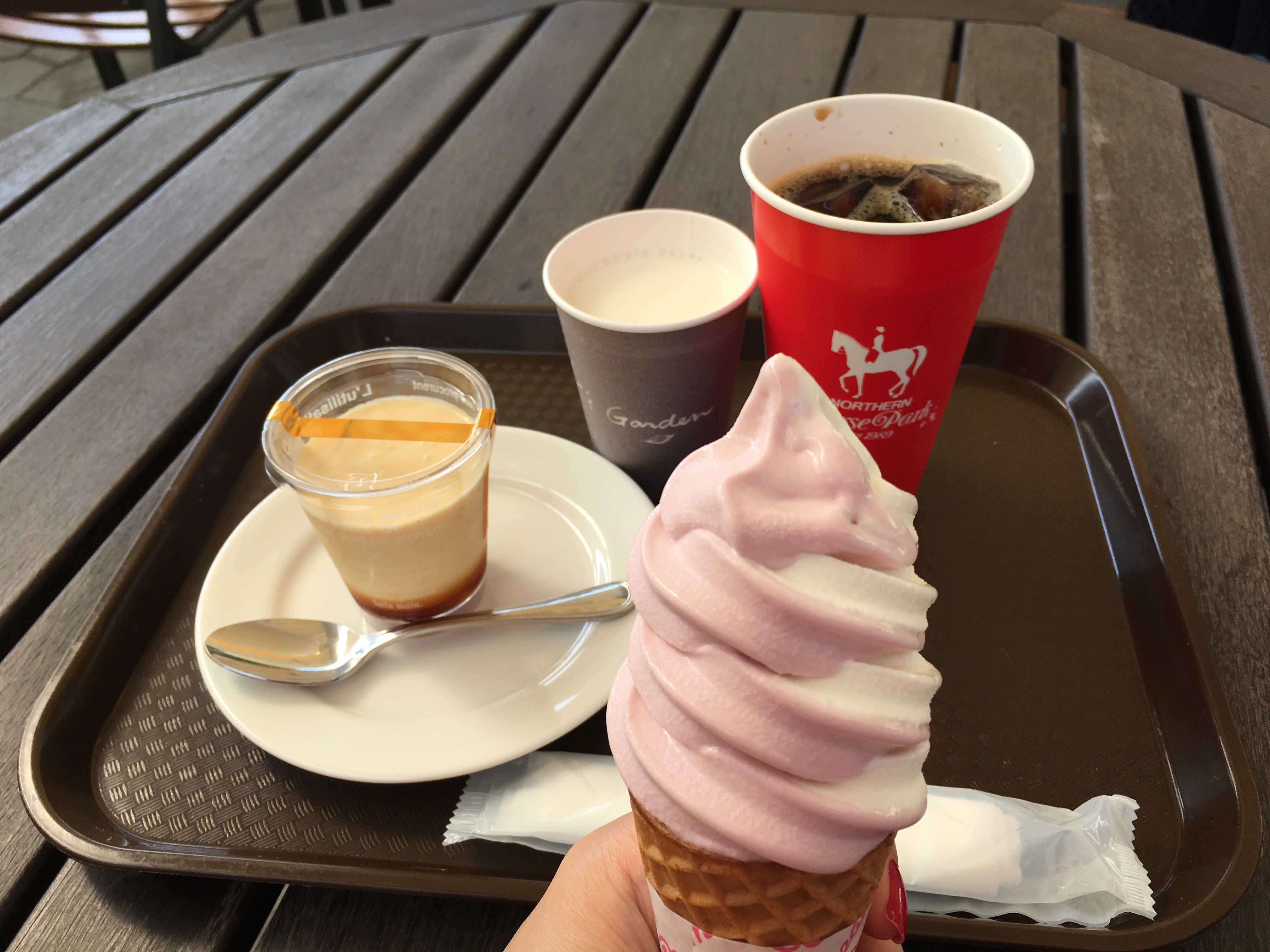 I enjoyed milk and haskap (blue-berried honeysuckle) ice-cream, pudding, hot milk and iced coffee at the Kitchen K’s Garden.