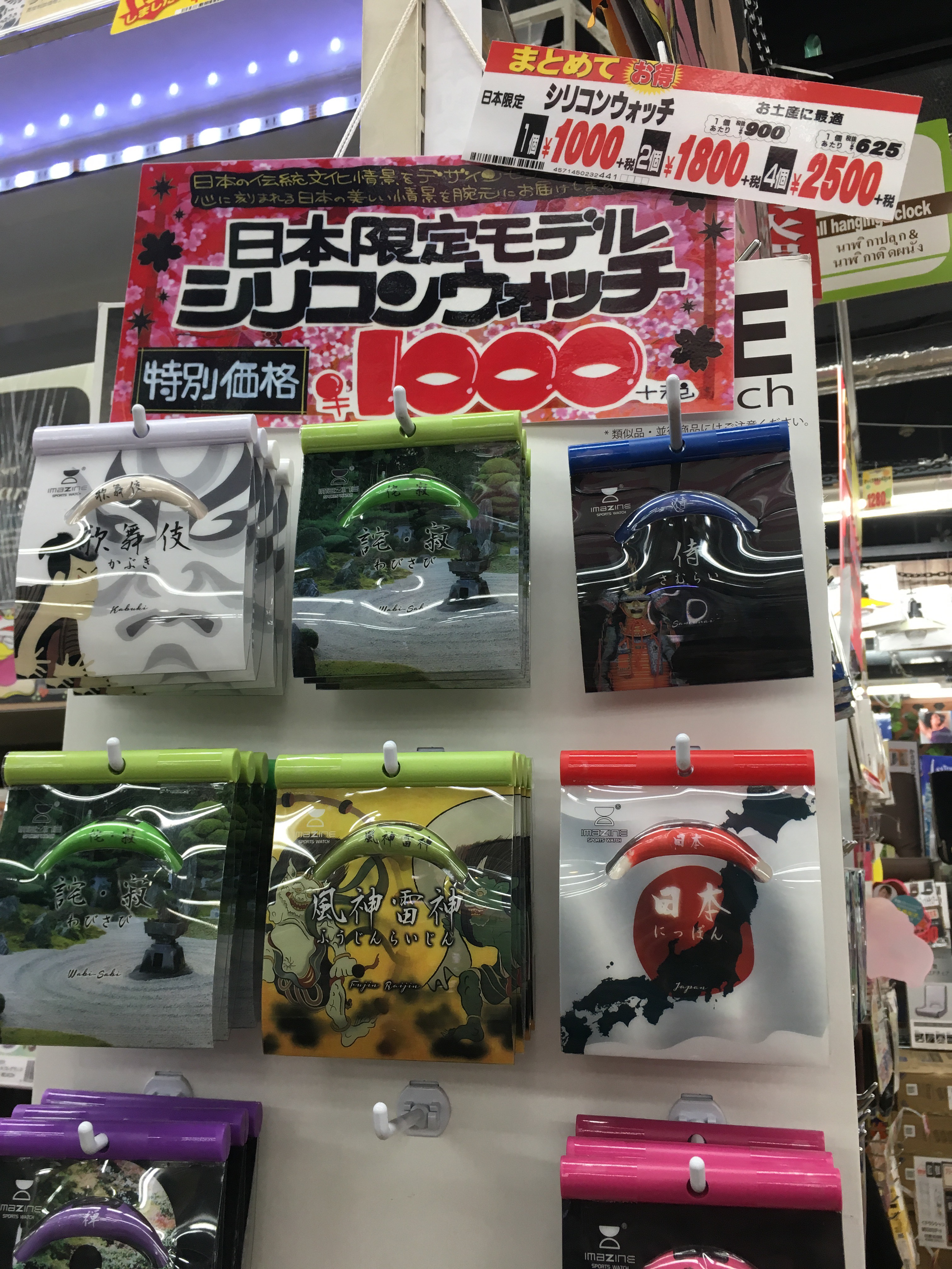 There is a tag saying, if you buy four, the price is JPY 2500.