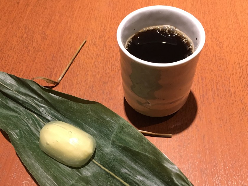 Dessert is wrapped in real sasa leaf.