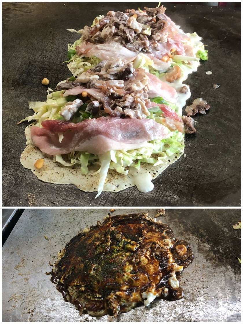 First, I went for Okonomi-Yaki (Japanese grilled pancake) at Konomi-Ya, Himeji, Hyogo.