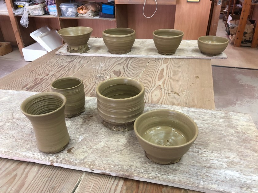 I made four things: beer cup, Japanese tea cup, Matcha green tea bowl for tea ceremony and rice bowl (from left).