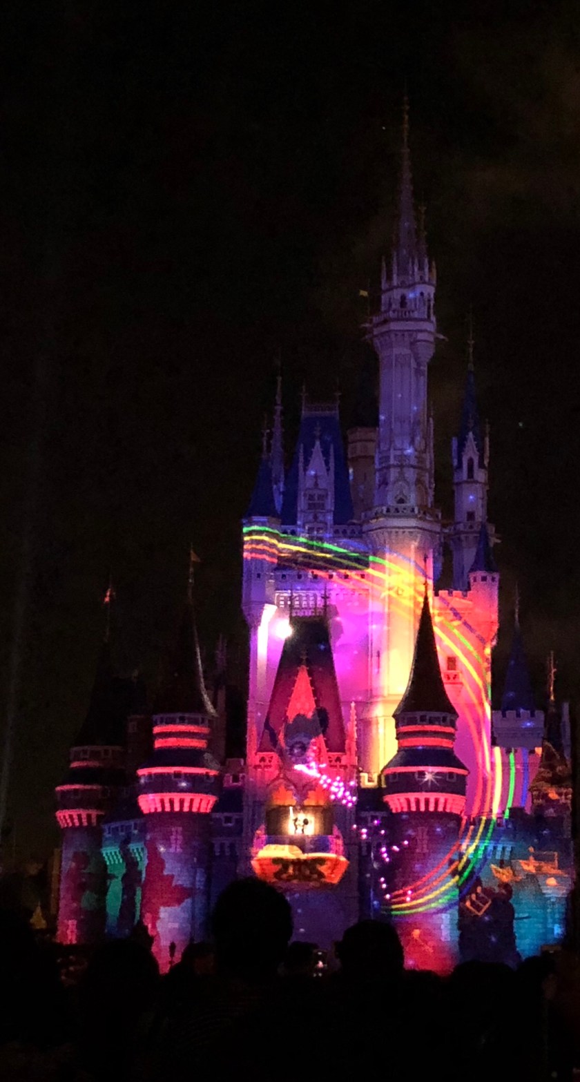This show collaborates with Cinderella Castle, projection mapping, fire works, smoke and fire!