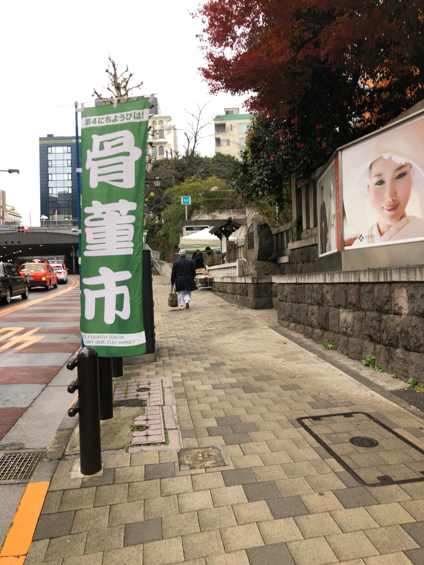 I saw the banner saying Kotto Ichi (antique market) at Nogi Jinjya (Nogi Shrine).