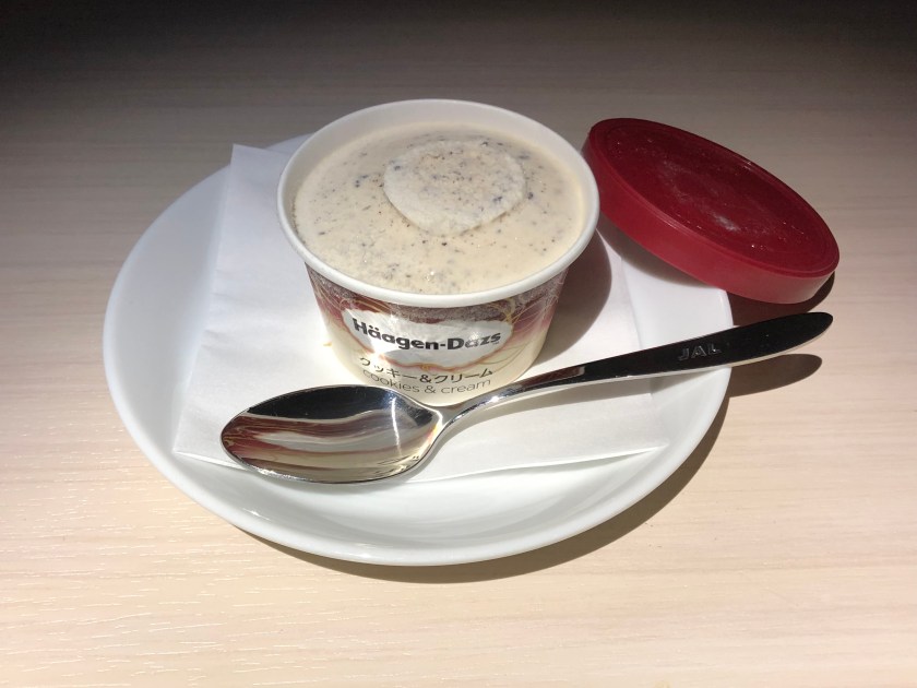 I was still full from a packed breakfast so I brought this banana cake back which was served on the flight.