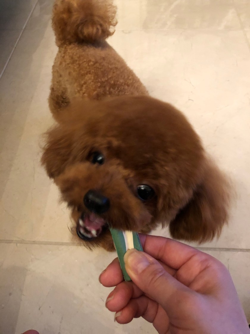 I bought ORAVET for brushing Choco’s teeth.
