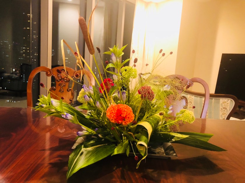 I haven’t arranged flower for a while so I thought I should decorate a room with floor for my birthday.