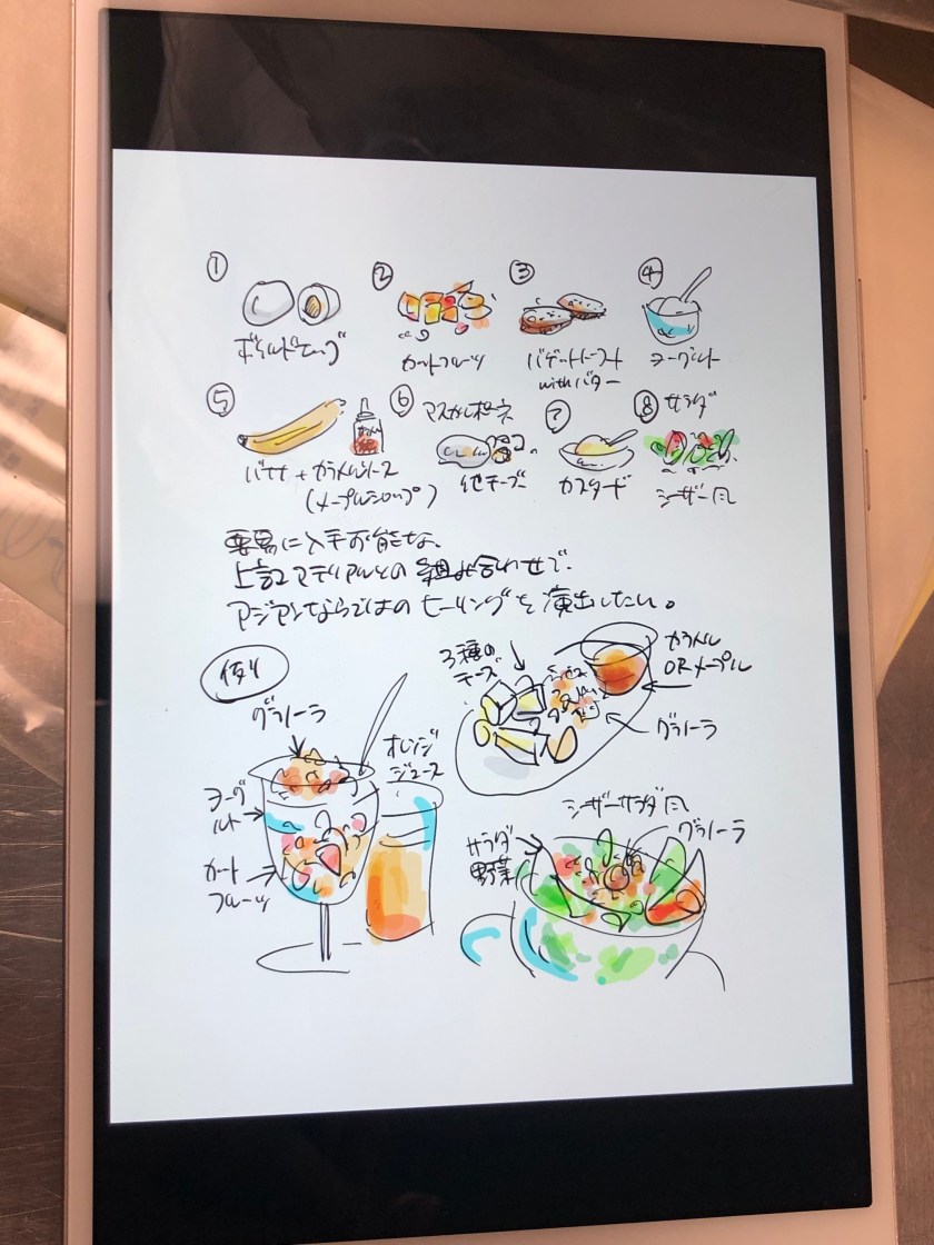 I ate a lot yesterday; therefore, I took a simple breakfast: Fukui sour plum onigiri (rice ball) and a coffee.